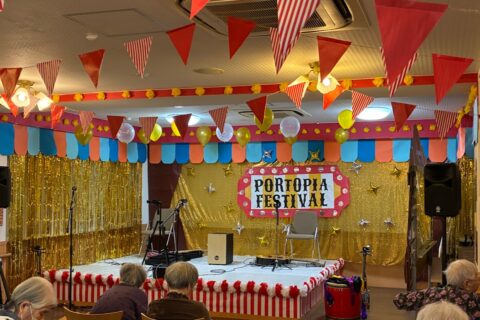 ポートピア祭りの準備として ご利用者にも装飾物の作成を 手伝っていただいている様子を 何度かBLOGで紹介してきましたが、、、 11月24日 すべてが綺麗に装飾され ポートピア祭りが開催されました・・・