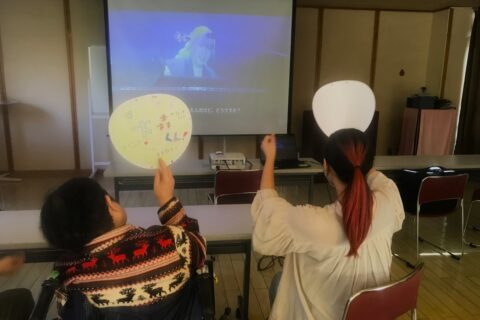 関西福祉大学とのコラボ企画”兎追いし彼の山P VOL3” 今回は、音楽が大好きなH様の想いを叶えるべく、即席LIVEステージを実現✨ 推しのうちわを作成してスタンバイOK!!! H様のハッシュタグ。ハッシュ・・・