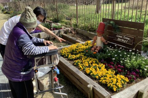 待ちに待った春がすぐ近くまで来ています。 先日、中庭にある「養力ガーデン」へご利用者様と一緒に散歩をしました。 養力ガーデンにはさまざまな種類の花が咲いており、春の訪れを感じながら穏やかな時間を過ごしました。 ご利用者様・・・