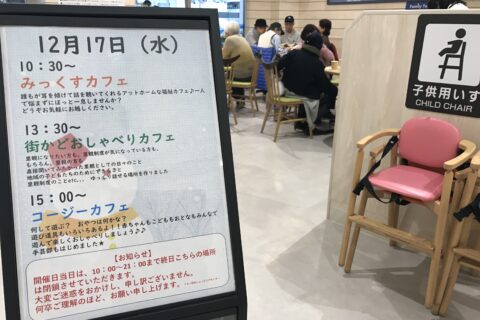 12月14日(日)の午後、ゆったりとした時間の中で「歌声喫茶」を開催しました。 午後の喫茶タイムと歌の会をミックスした、楽しいひとときです♩ 普段は食堂で行っている歌の会ですが、今回はロビースペースで開催しました。 挽き・・・