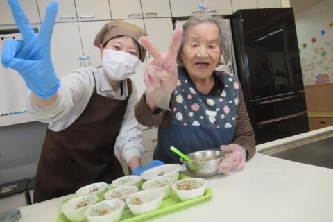グループホーム清華苑では、ご利用者と一緒に昼食作りを行いました😊 お二人共、白菜を一生懸命切ってくださっていますね さて、どんな料理が完成するでしょうか? ご利用者が楽しまれながら調理している姿を見て、職・・・