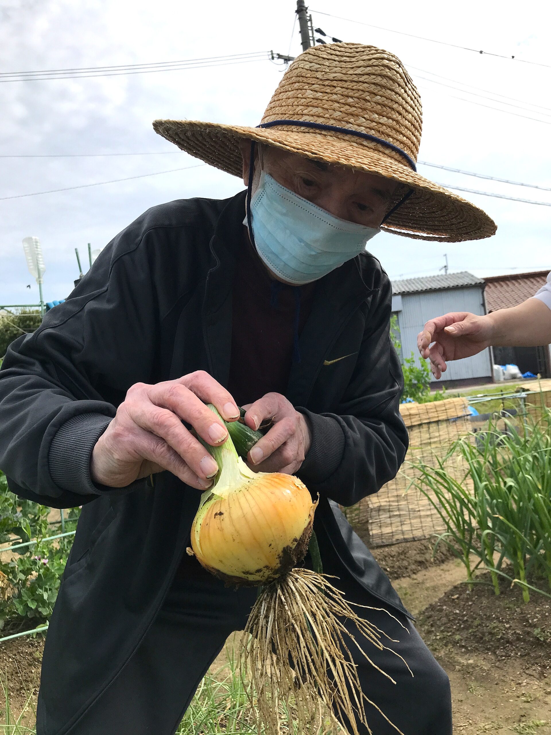 しっかりと根の張った玉ねぎは簡単には抜けず「大きなかぶ」状態になっていました。写真には収めれず残念!!
