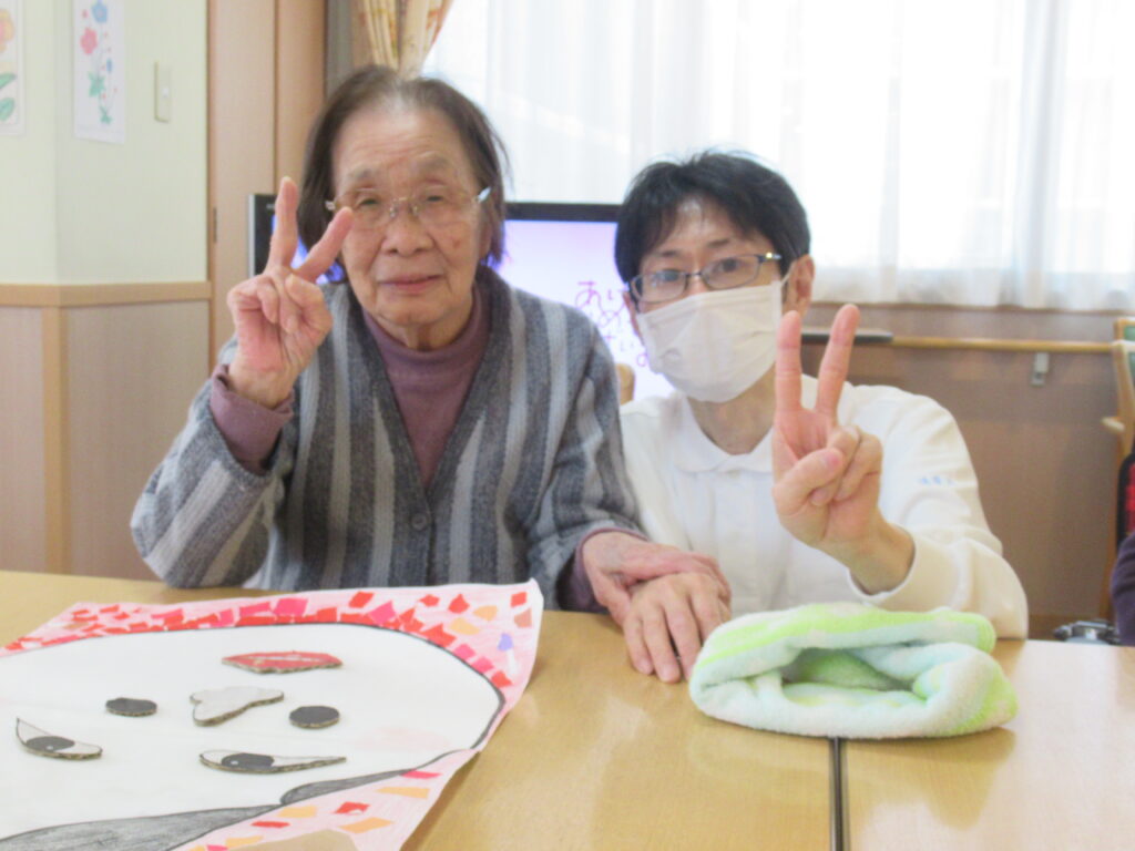 ご利用者の皆様の素敵な初笑いをみて、職員もつられ笑いをする、賑やかであたたかい余暇時間になりました😊