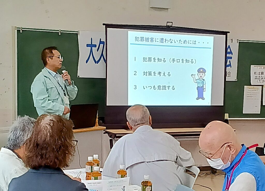 当日は、明石市総合安全対策室による「防犯講座~めざそう犯罪ゼロのまち~」を受講。