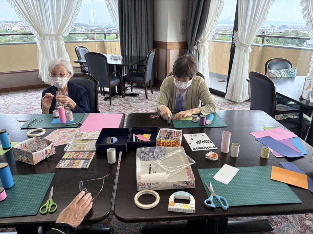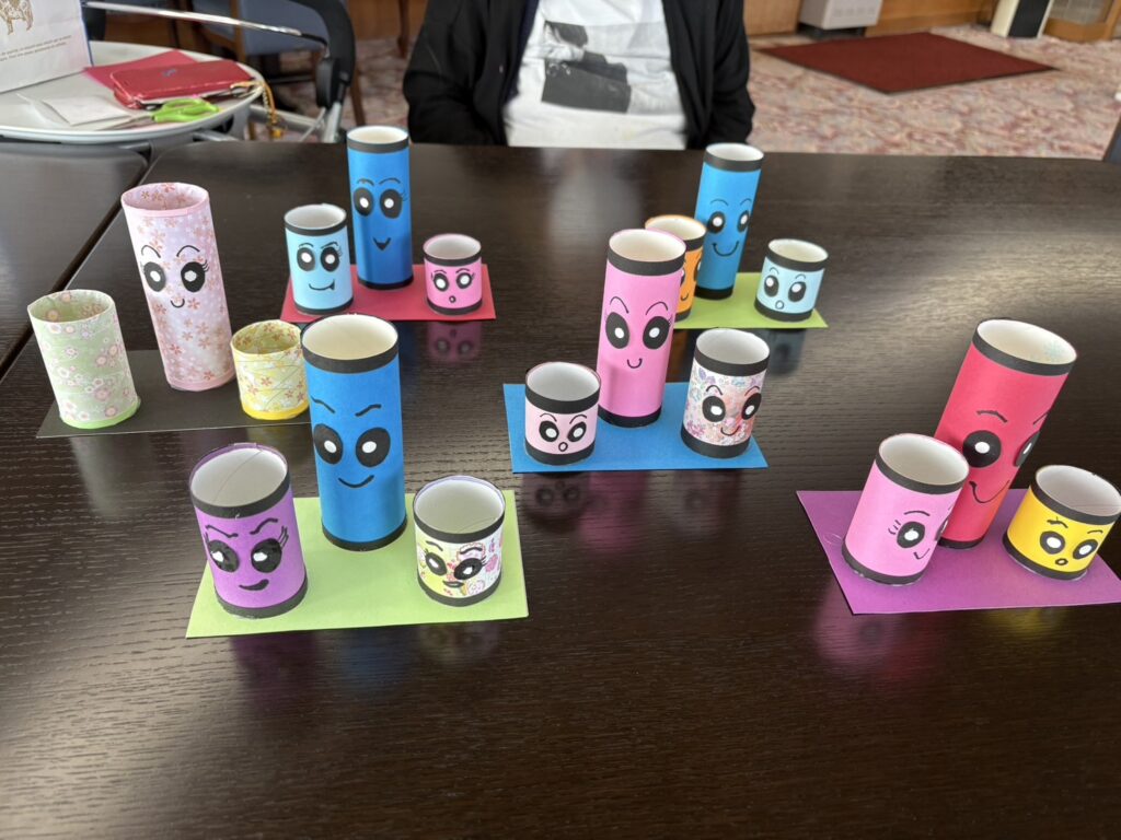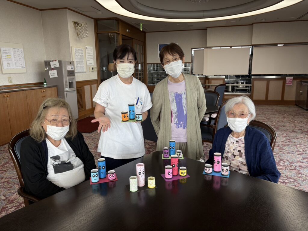 今月の手作りアートの会では、「トイレットペーパーの芯でペン立て」を作りました!
