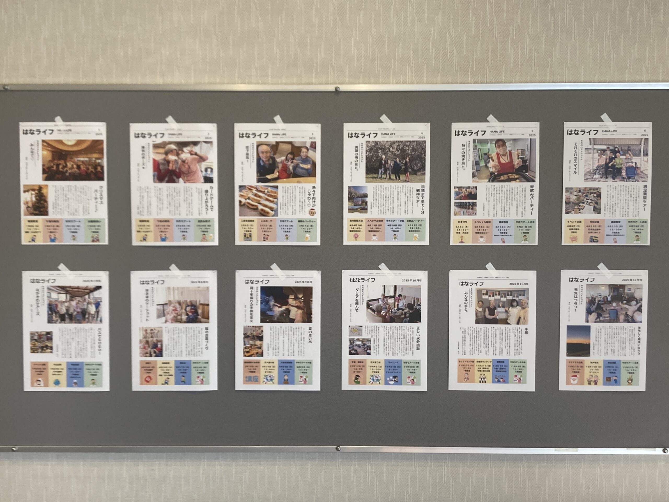 ケアハウスの広報誌「はなライフ」をロビーの掲示板に掲示させていただきました。