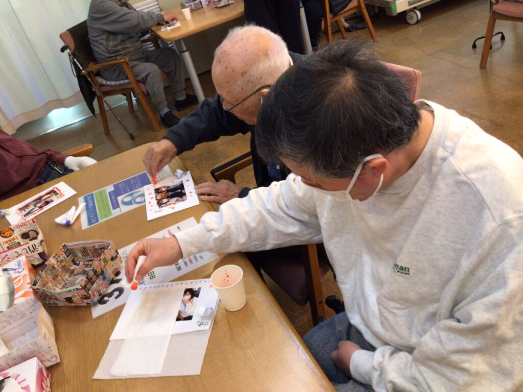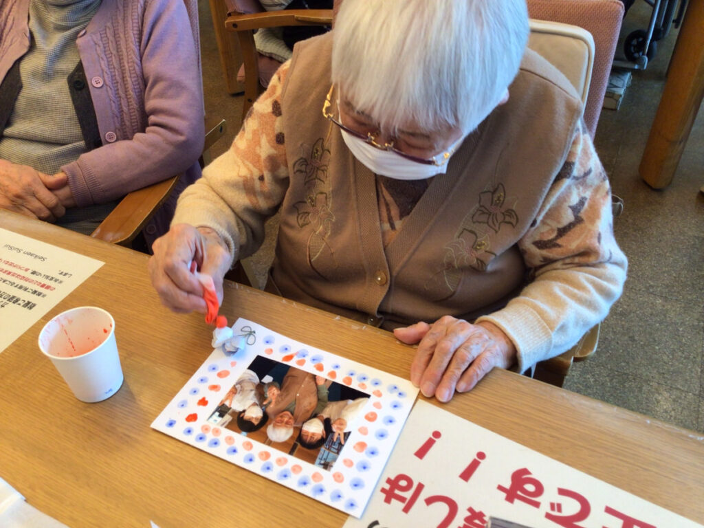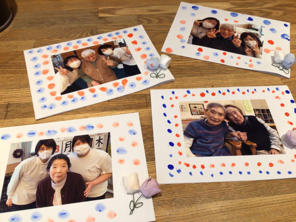先日、ご利用者お一人ずつ職員と一緒に写真を撮り、