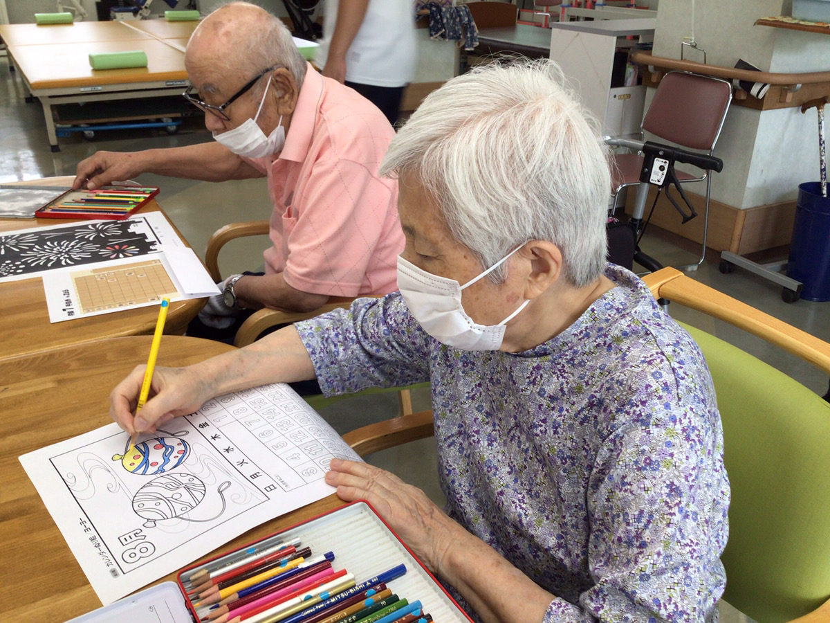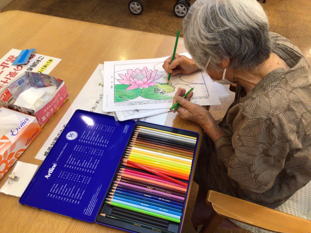 清華苑すいすいでは毎月更新されるぬり絵が大人気となっており、