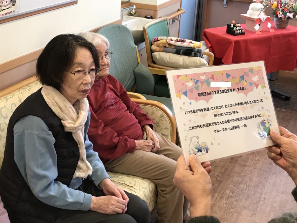 グループホーム清華苑では年末にお誕生日を迎えられたご利用者のお祝いをしました🎂✨