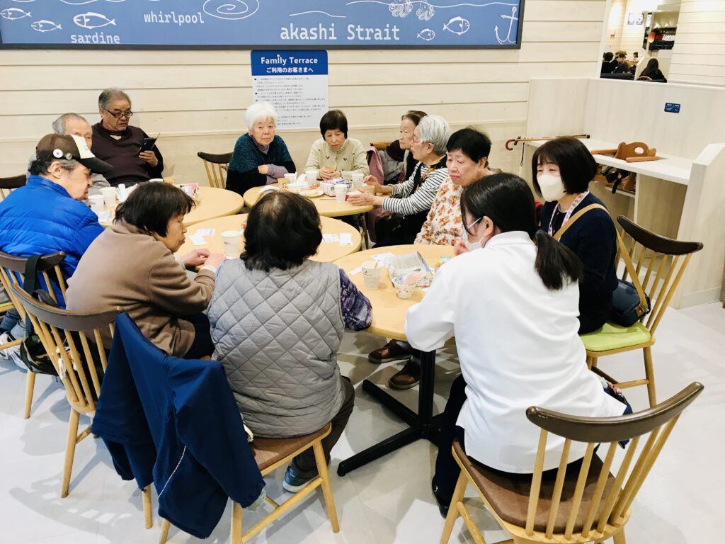 今回は、兵庫ヤクルトのコミュニティナース・櫻井さんにもお越しいただき、健康相談や傾聴でそっと寄り添っていただきました。