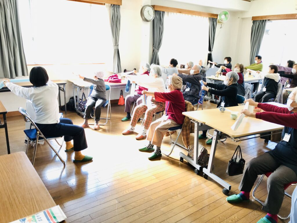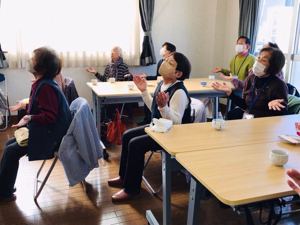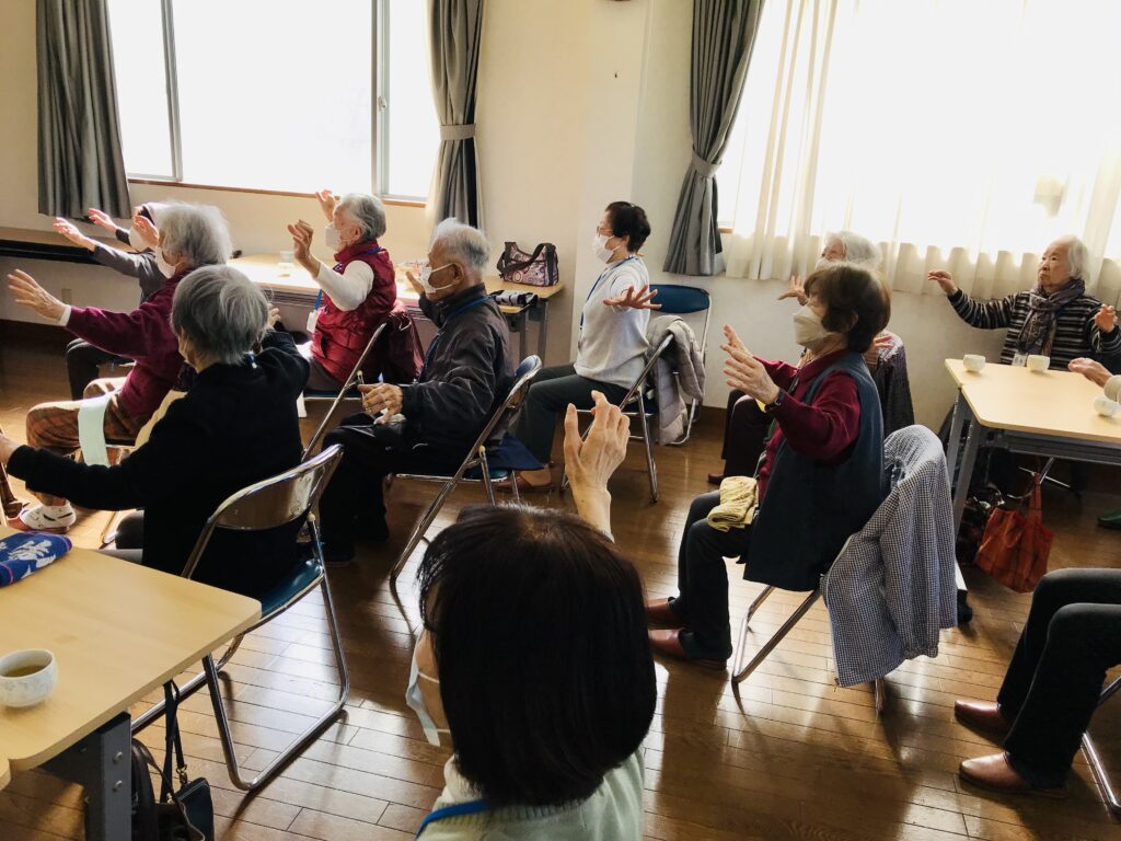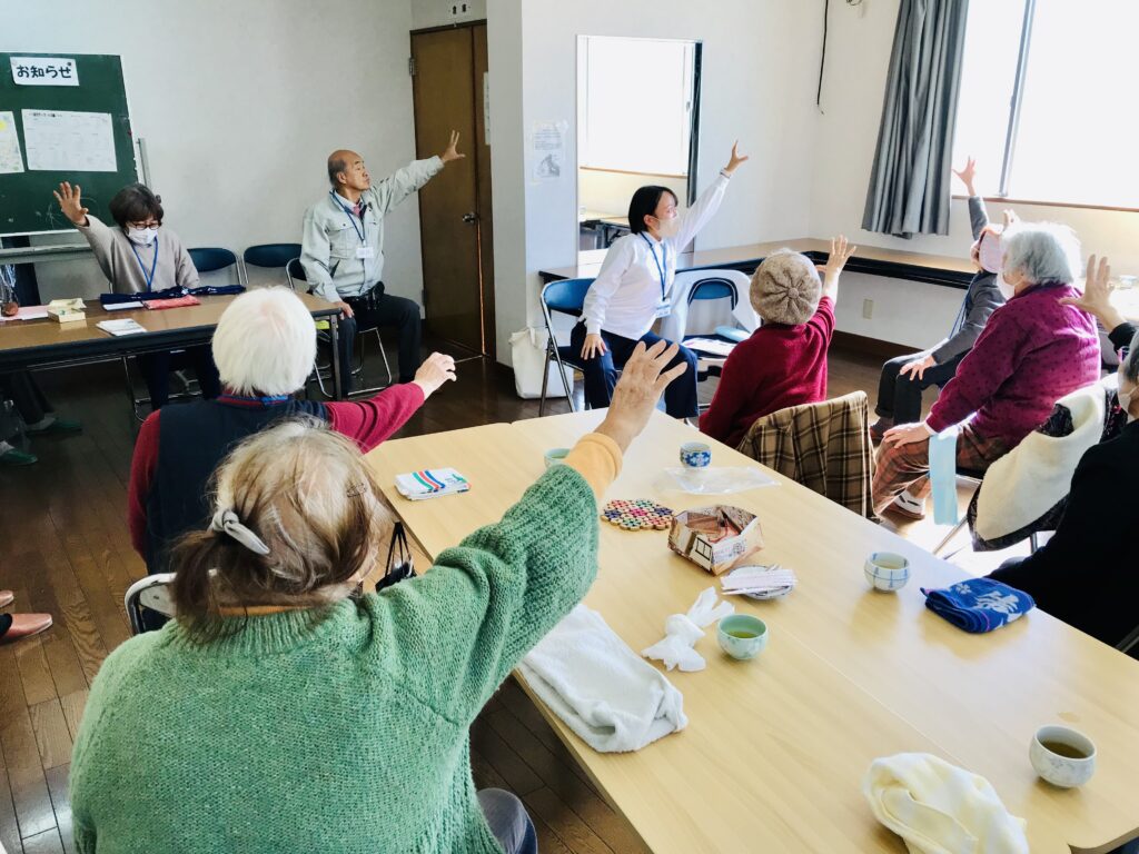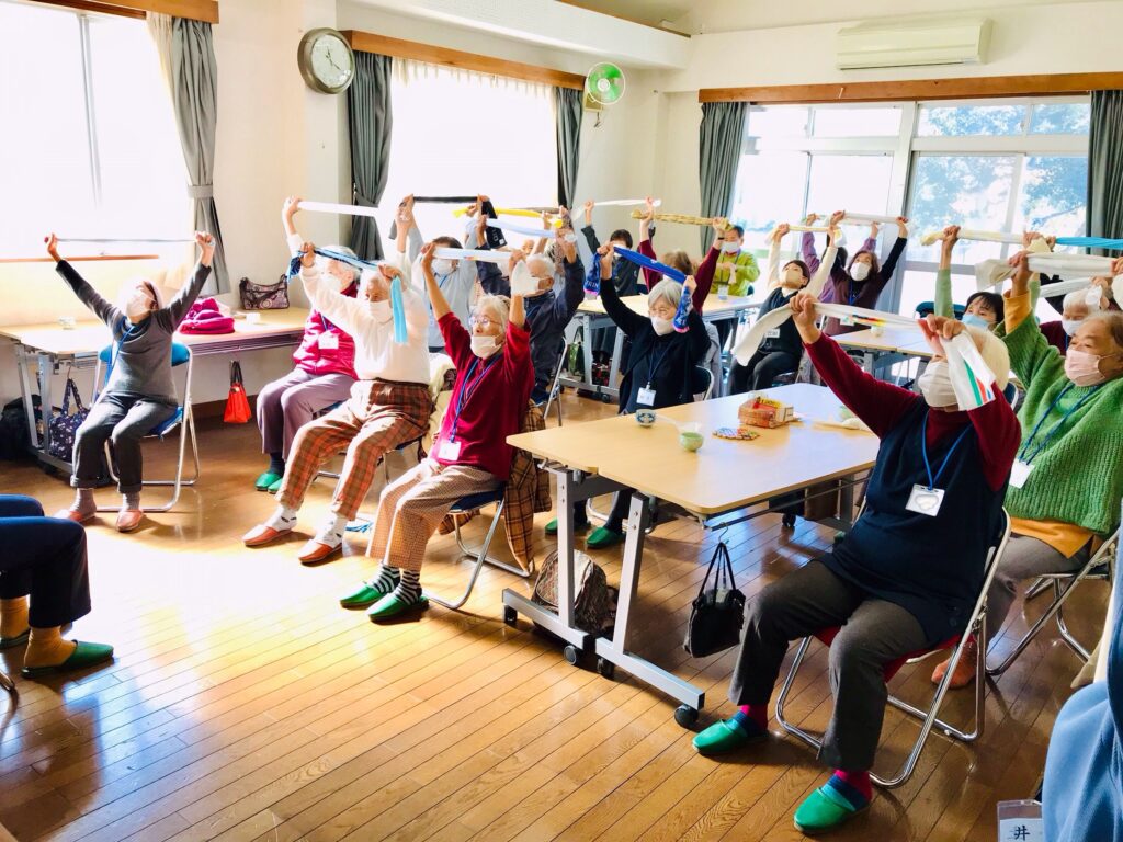 11月19日、山手台ふれあい会食で、タオル体操を行いました。