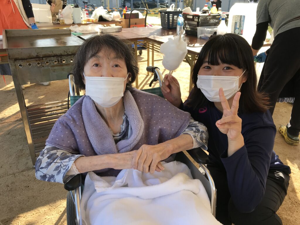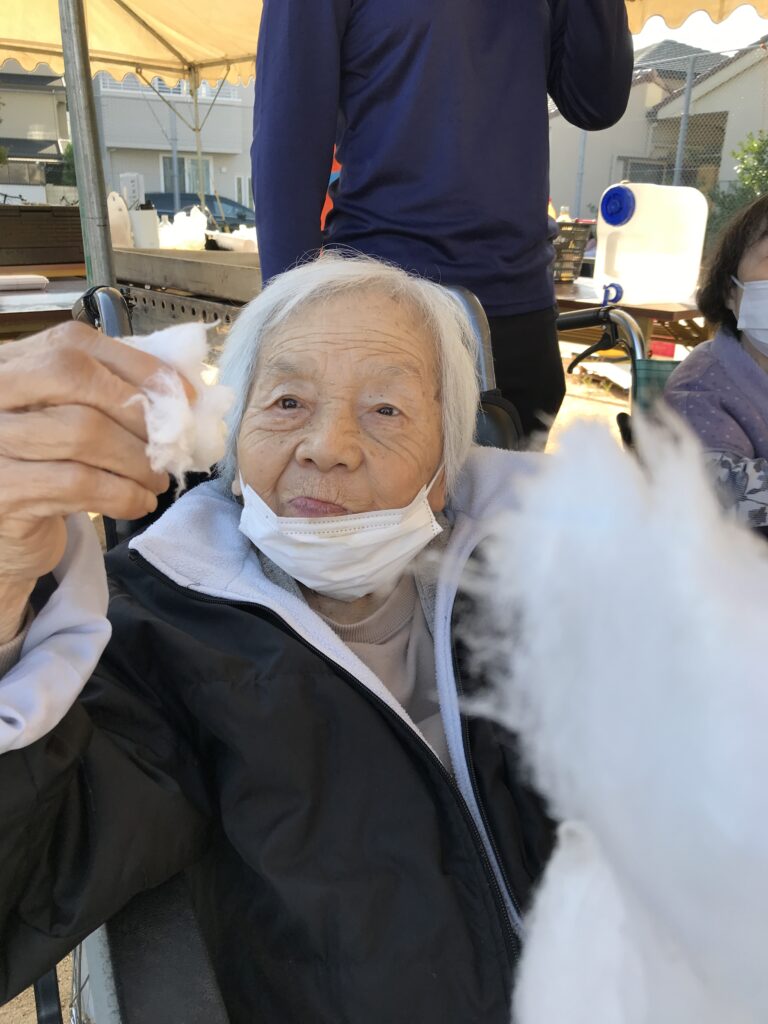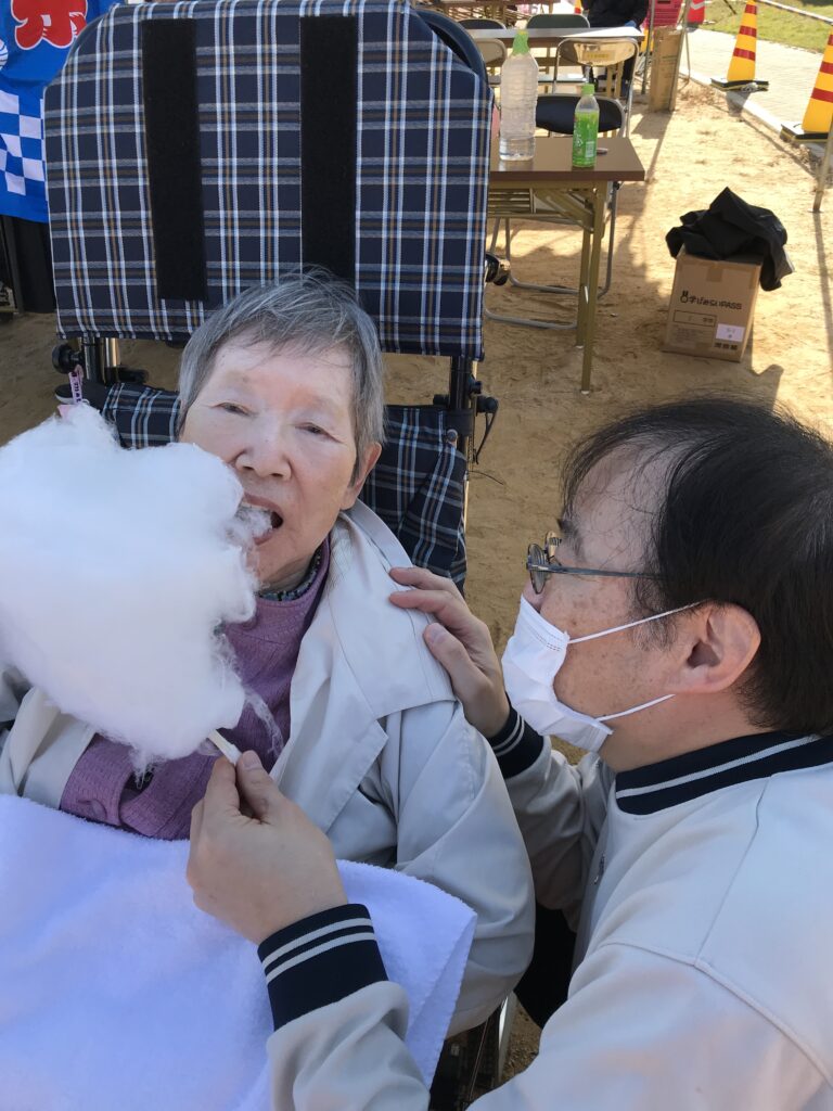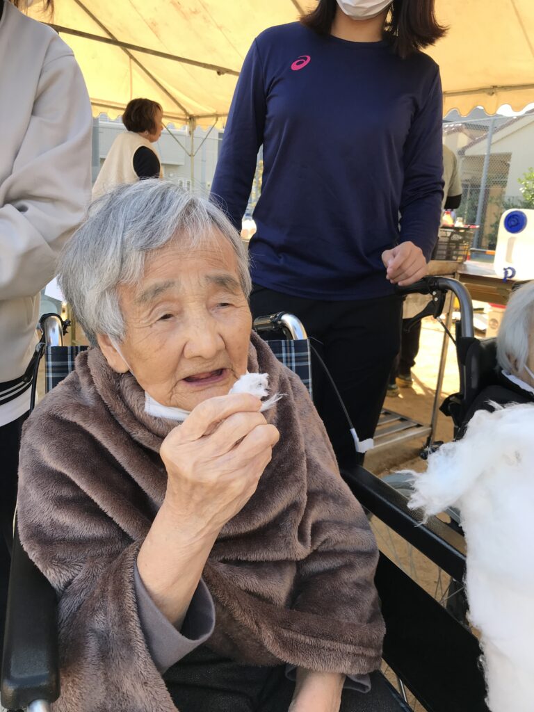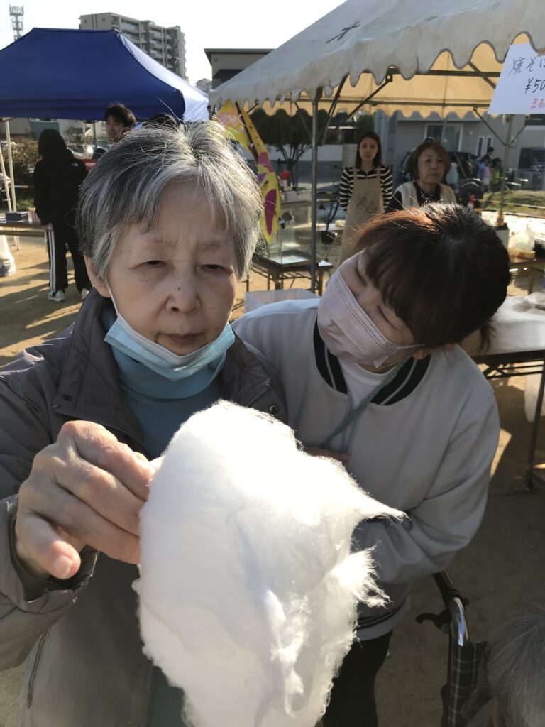 綿菓子を食べて「甘くて美味しい」と皆さん絶賛!