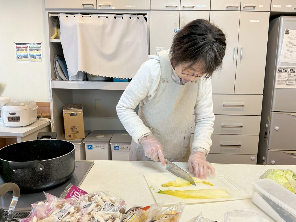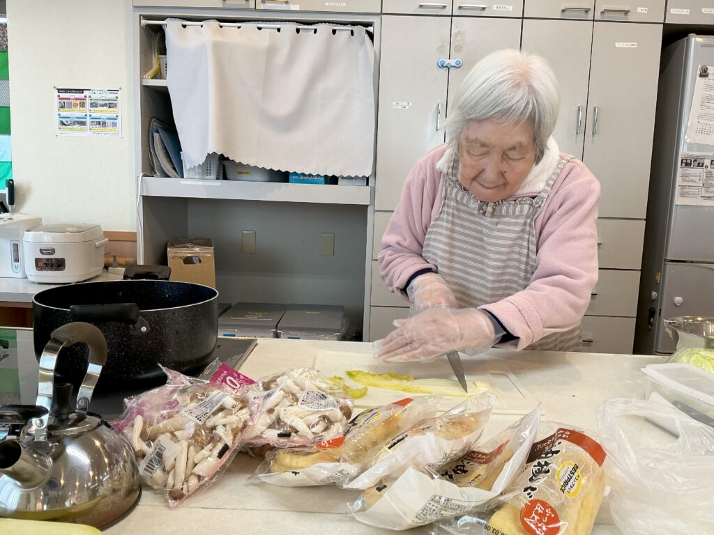 本日、ご利用者と調理したメニューは「白菜としめじと油揚げの煮物」でした!