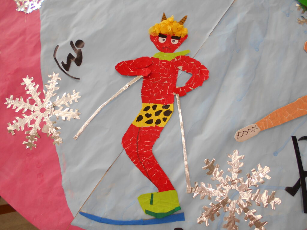 フィギュアスケートをしている選手の貼り絵を制作しました。