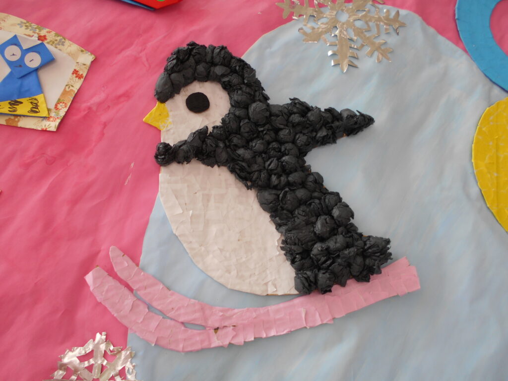 フィギュアスケートをしている選手の貼り絵を制作しました。