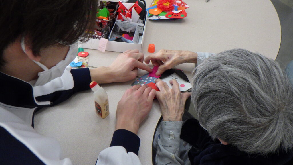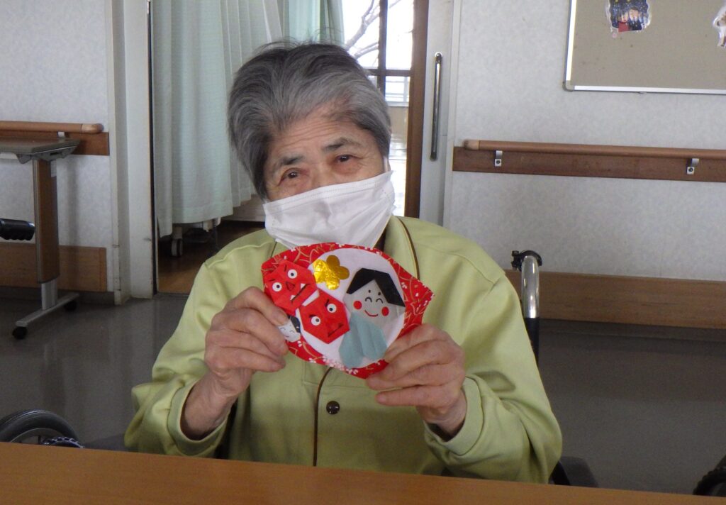お多福・鬼・椿の花などで春の飾りつけでステキな壁掛けに仕上がりました!!