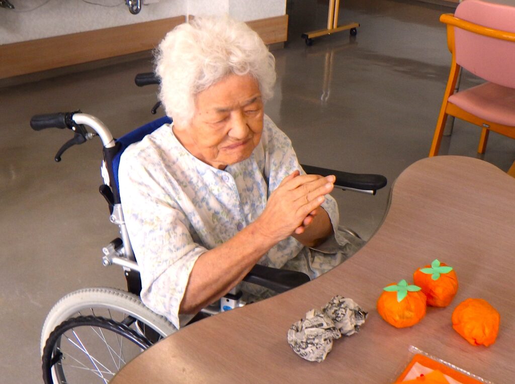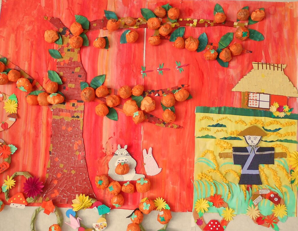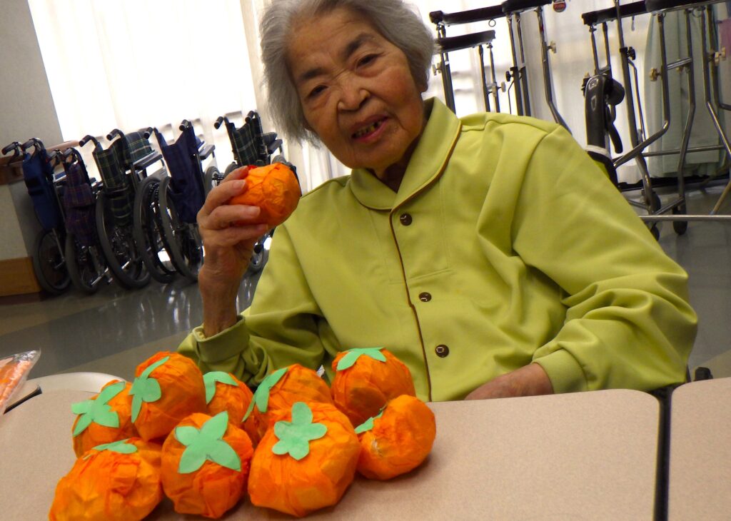 みなさんがとても器用に丸めてくださったおかげでたくさんの柿が実りました。