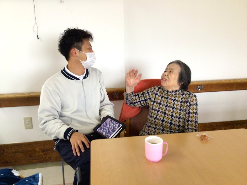 私は、ご利用者の皆さんとコミュニケーションをとるとき、いつも共通の話題がないかを探しています。例えば、生まれた地、思い出の場所、趣味、得意なことなど。