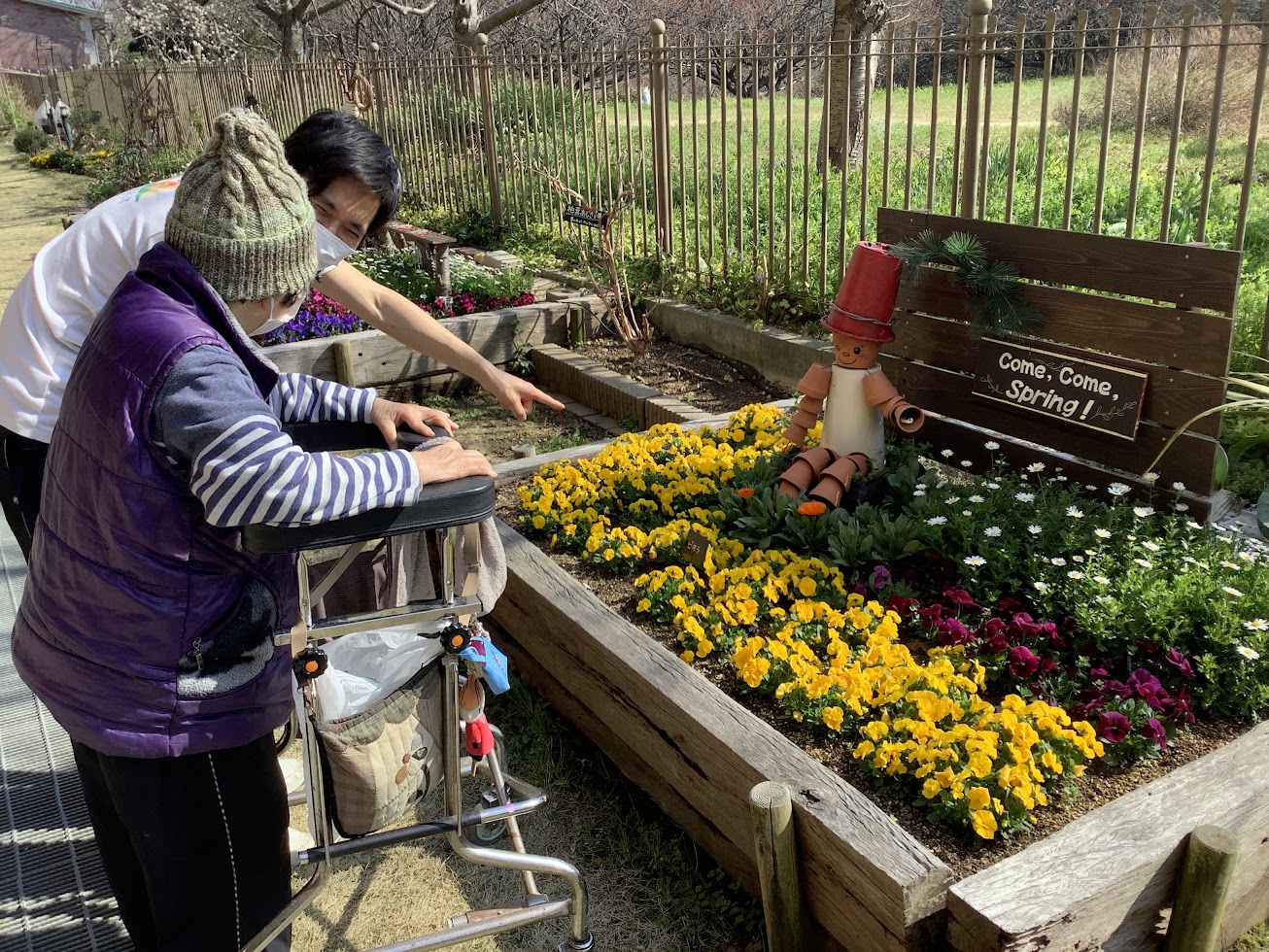 ご利用者様も花を見ながら「きれいですね~」「春らしくなってきましたね」と話され、自然と笑顔も多く見られていました。