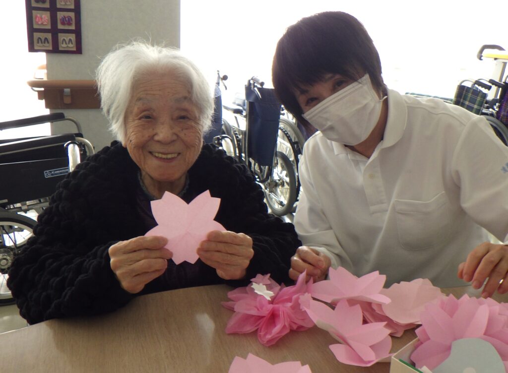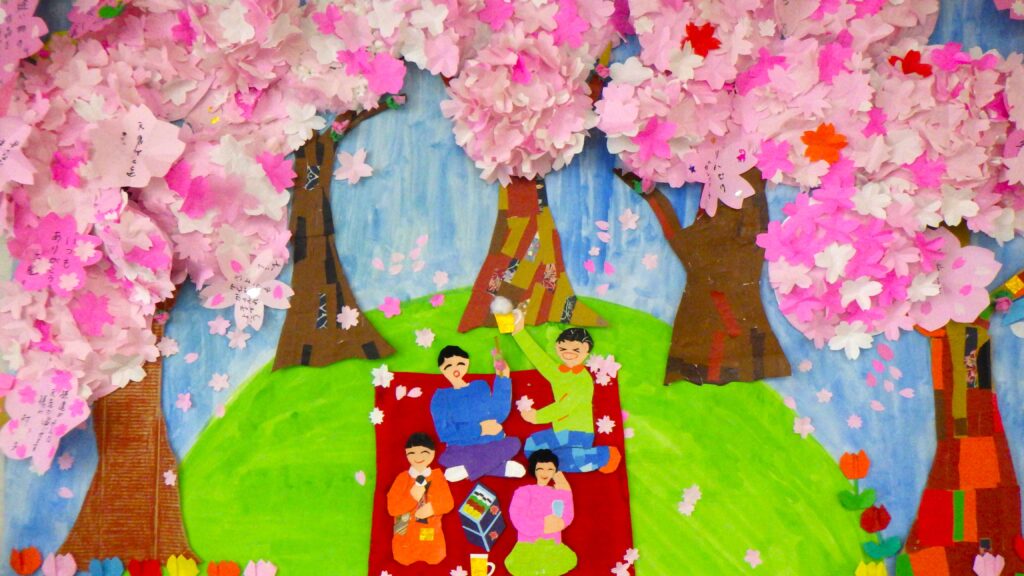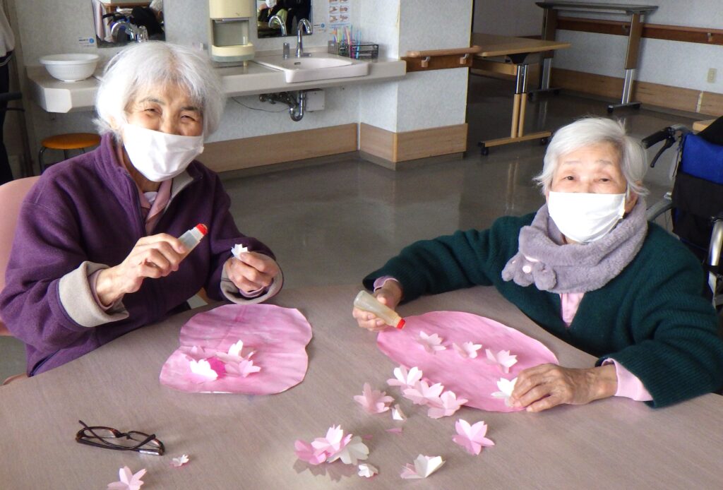 作業活動では桜の花とはなびらをたくさん作りました。