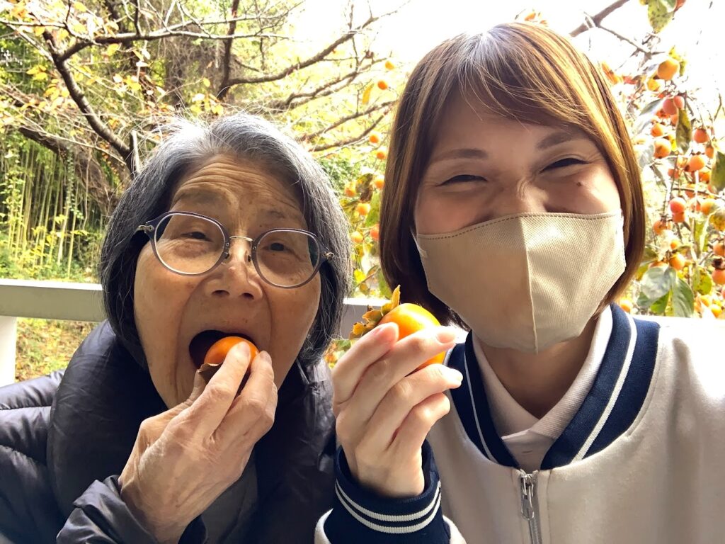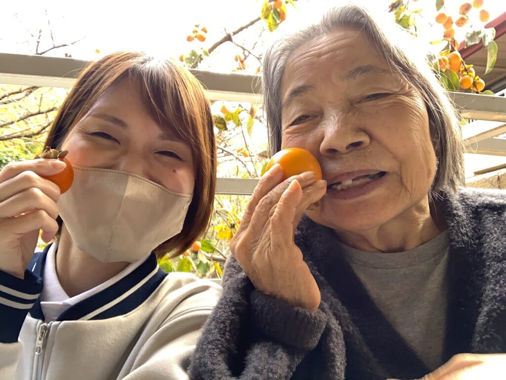 特養清華苑の裏庭にある沢山の柿。今収穫時期を迎えています。