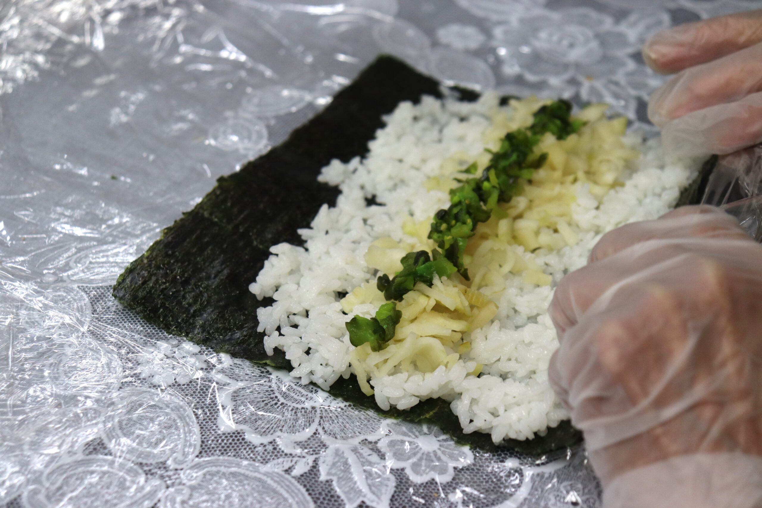 酢飯にのせて巻いていきます😉