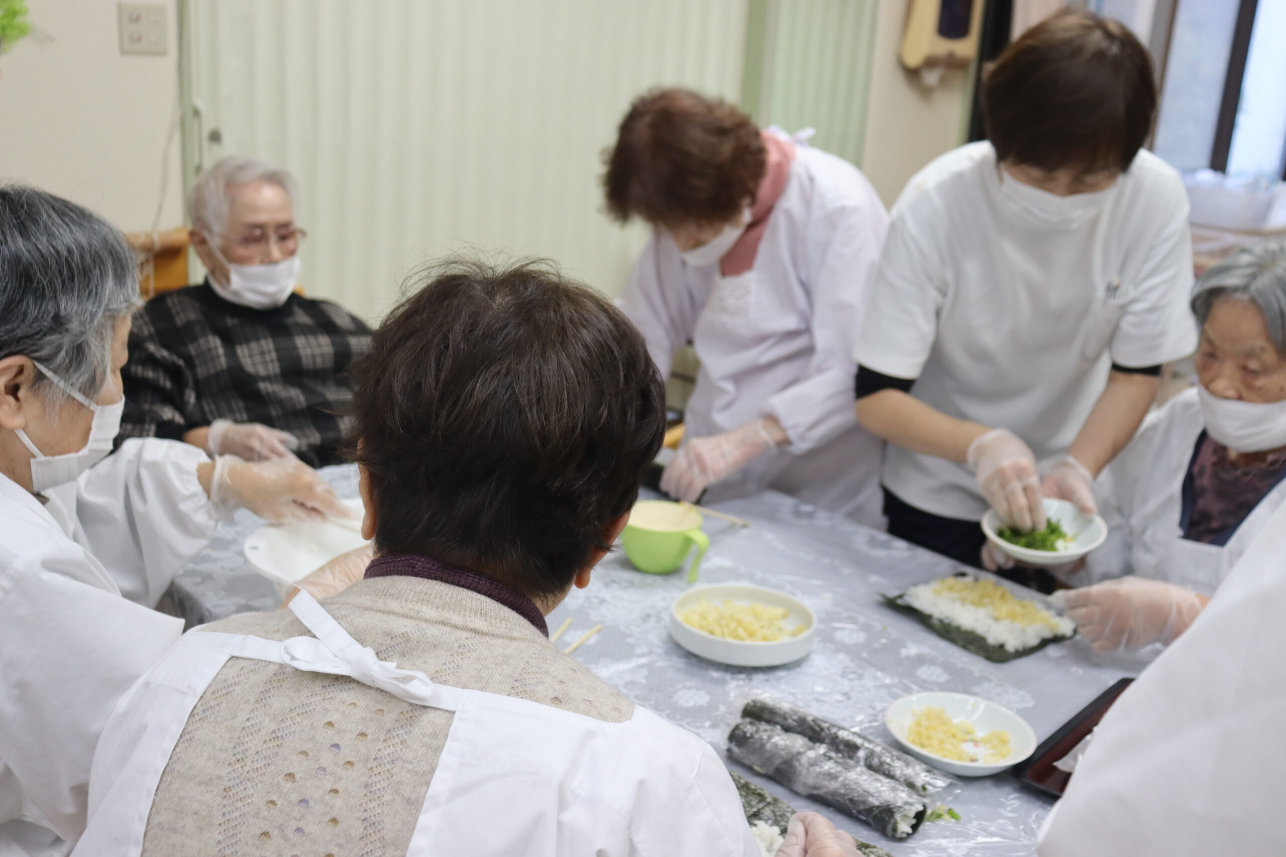 デイでは、節分に先駆けて巻き寿司作りをしていました!
