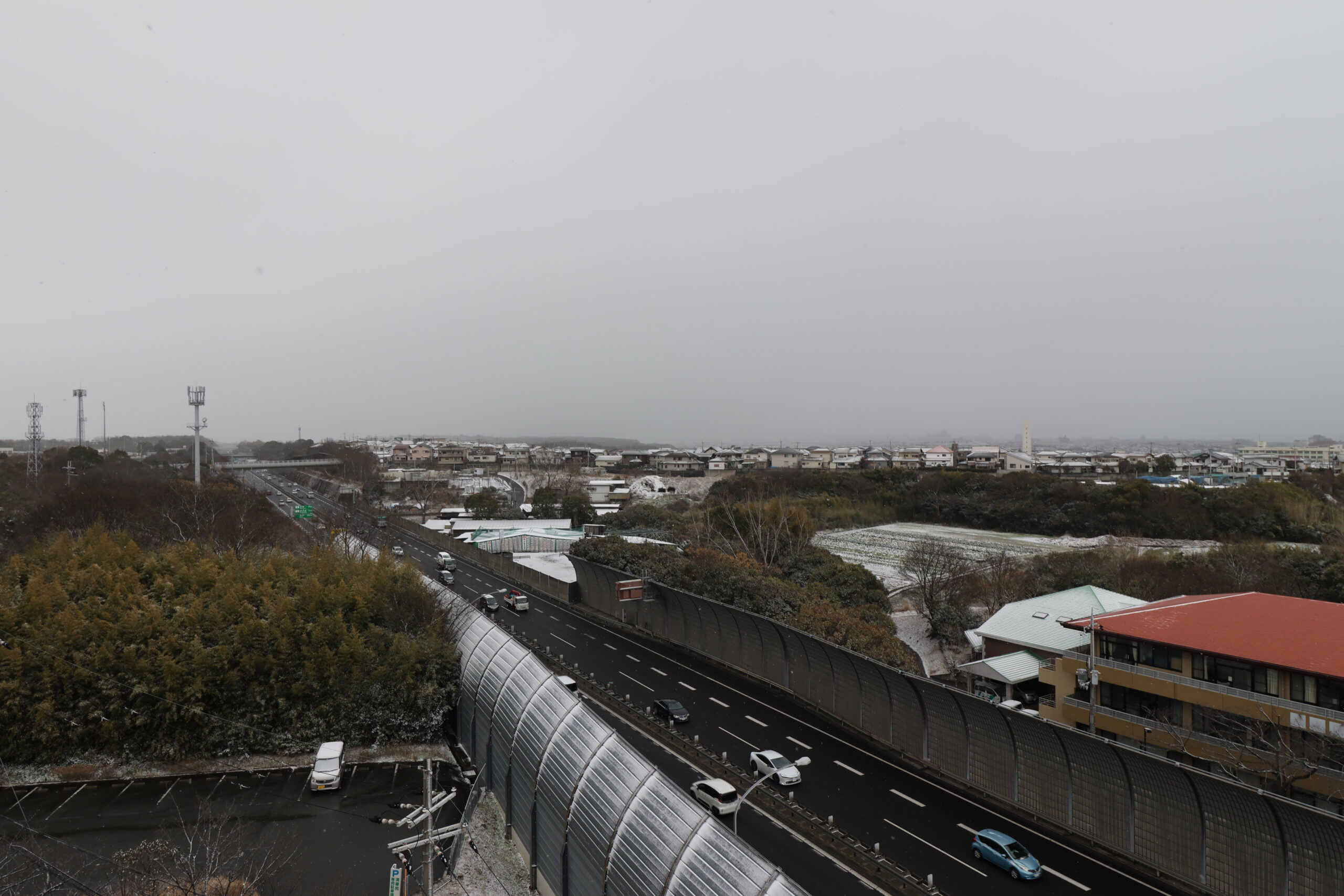 普段は見晴らしが良いケアハウスの食堂からの景色ですが、この日は終日グレーな雪雲に覆われていました。