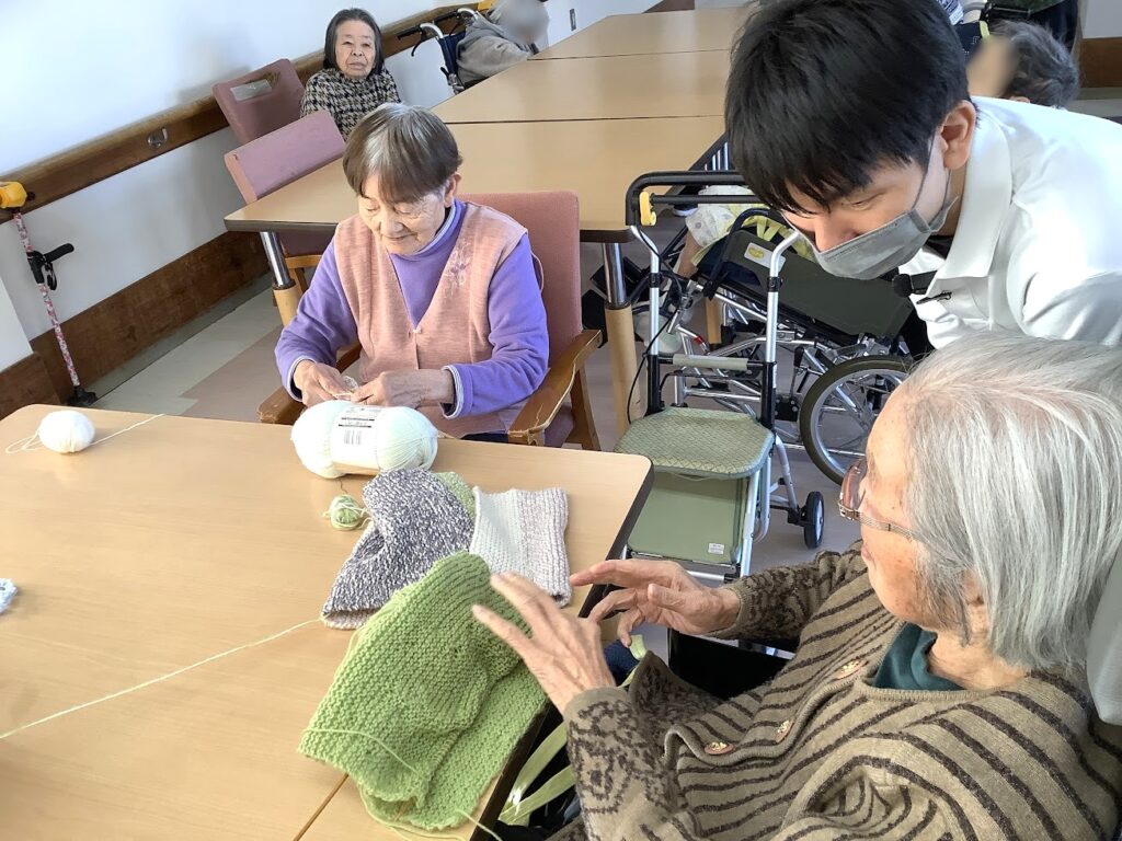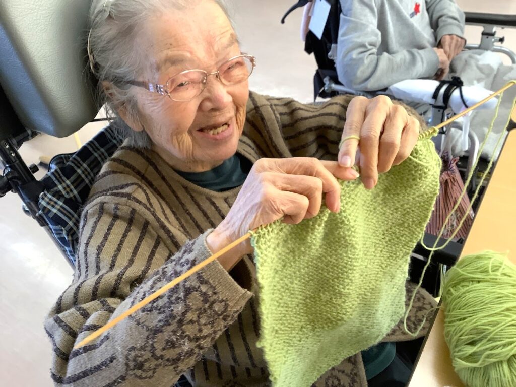今日も食堂で共通の趣味をもつお2人が切磋琢磨✨編み物をされています✨