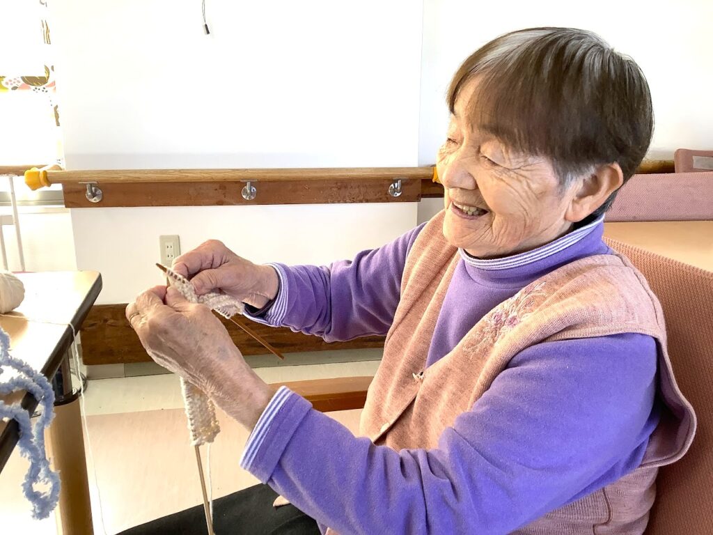 今日も食堂で共通の趣味をもつお2人が切磋琢磨✨編み物をされています✨