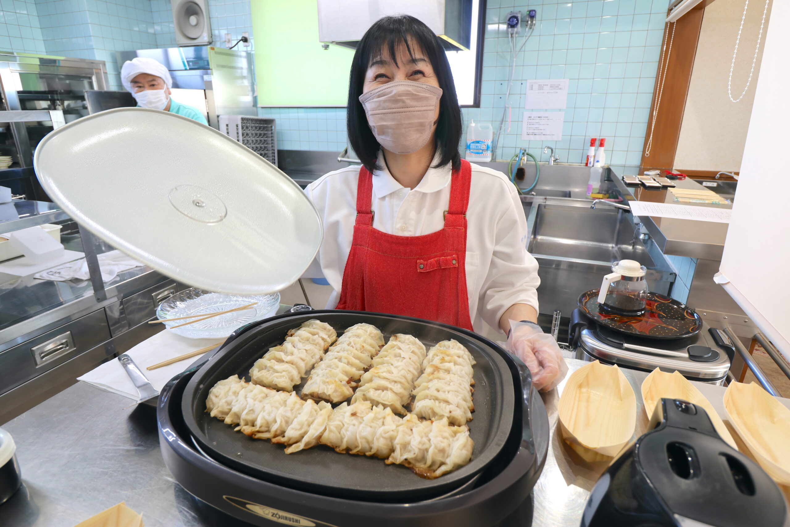 健康教室で身体をしっかり動かした後は、神戸三の宮一貫楼の餃子パーティー♩というミックスイベント。