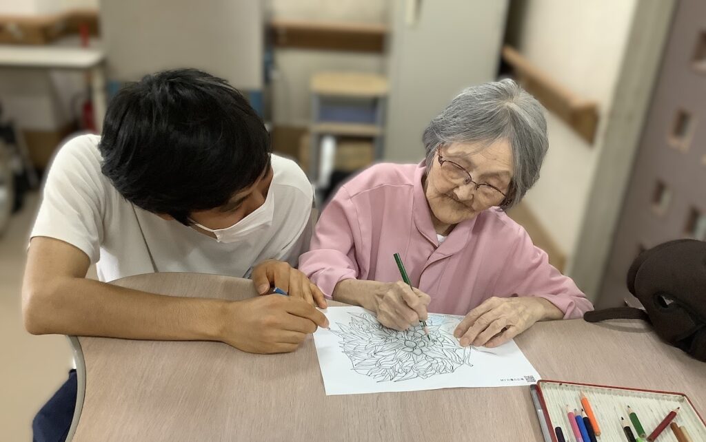 今日はAさまと一緒に塗り絵を楽しみました。