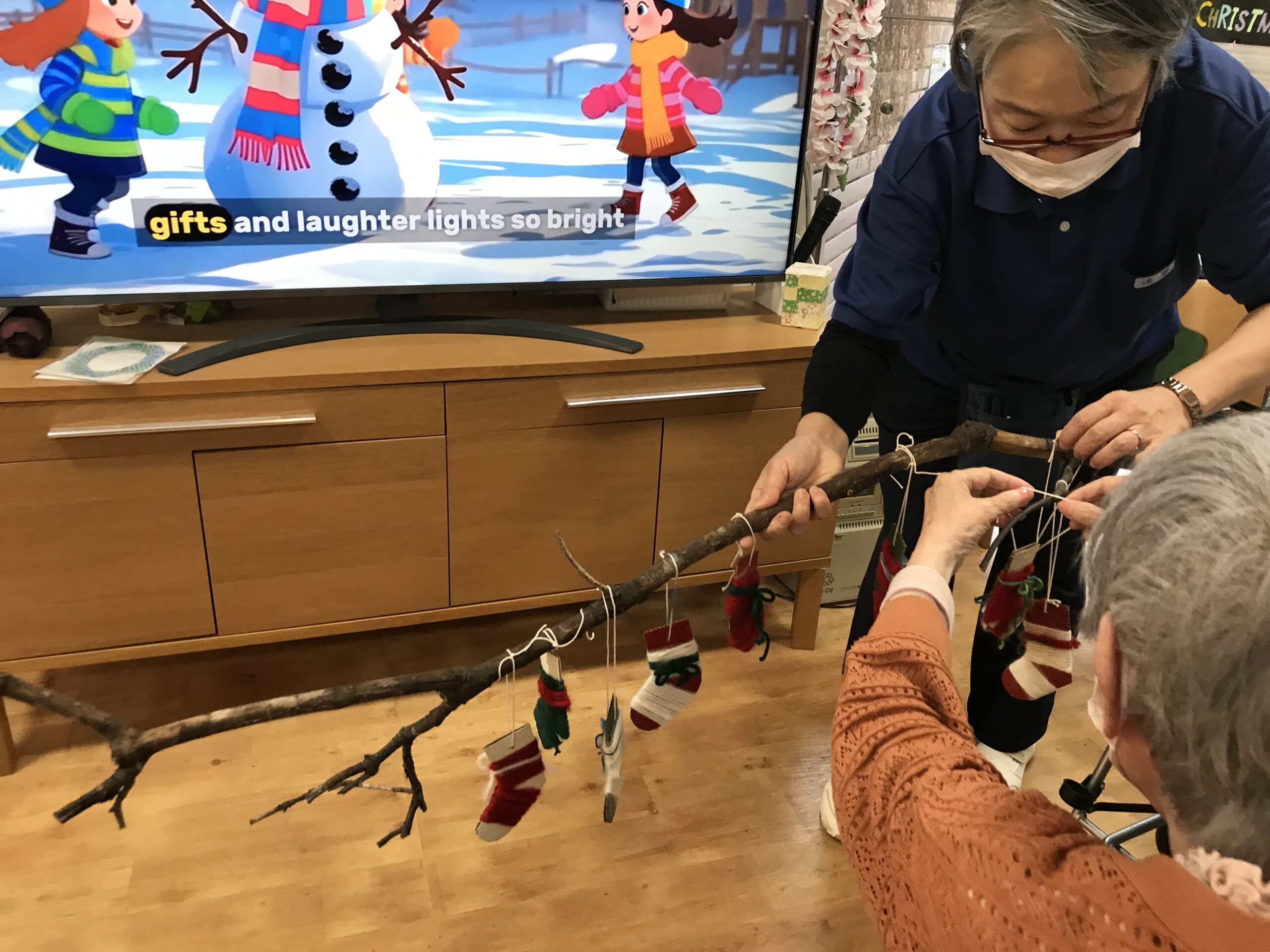 肥料を交えて土に馴染むのを待つ間に可愛いクリスマス飾りを作りました♪