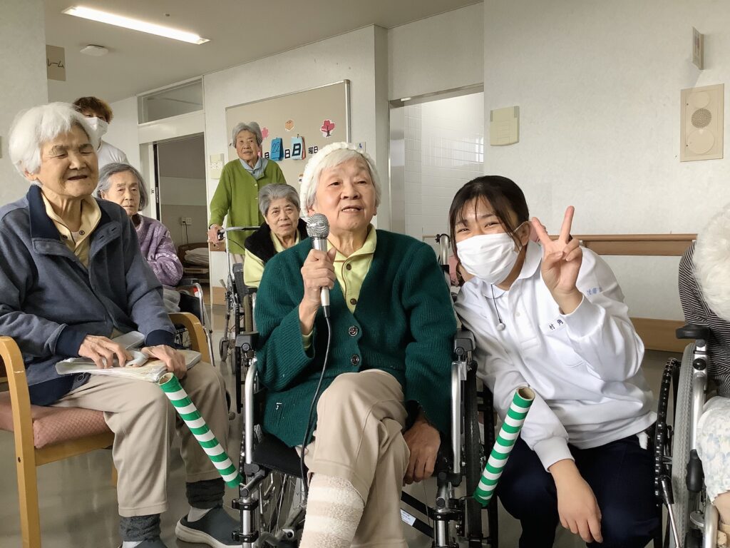 久しぶりに、カラオケレクを開催しました。👏🎶 老健には、少し年季の入った大きなブラウン管テレビがあるのですが 設置していると「これは何?」と興味を持たれたご利用者の皆さまが自然と集まってこられました😄 いつもは準備に少し時間がかかることもありますが、今回はスムーズに機器が動き出し、すぐに歌を流すことができました。「星の流れに」や「カスバの女」などの懐かしい曲が流れると、皆さま口ずさみながら、笑顔で手拍子をされ、とても楽しそうなご様子です。(^▽^)/ マイクをお渡しすると「恥ずかしいわ」と仰っていた方も、歌い進めるうちに声に張りが出て、のびやかに歌っておられたのが印象的でした🎵 また、「懐かしのブルース」を流した際には「姉ちゃん、これ高峰三枝子か?」と、歌手のお名前まで覚えている方もおられ、 思い出話に花を咲かせながら耳を傾けておられました。 中でも一番盛り上がったのは「銀座カンカン娘」です。「やっぱり明るい曲はいいね」と話され、 手拍子に合わせて笑顔で歌われる姿が見られました。 少し眠そうにされていた方も、目を閉じながらそっと口ずさんでおられ、年月が経っても心に残る歌の力を改めて感じます。