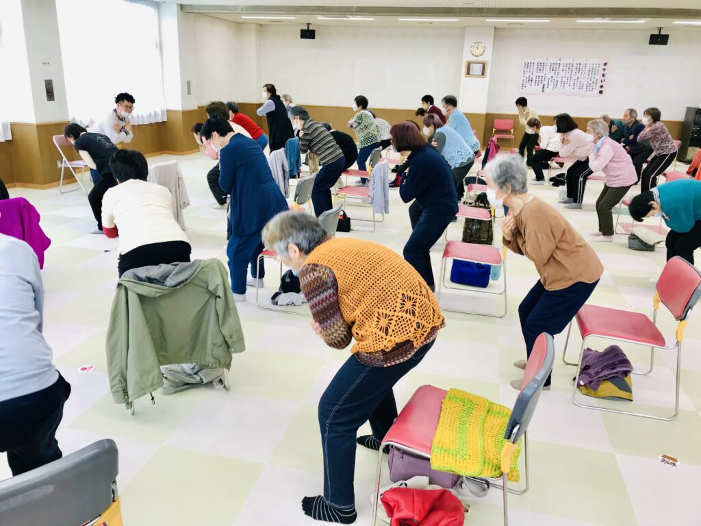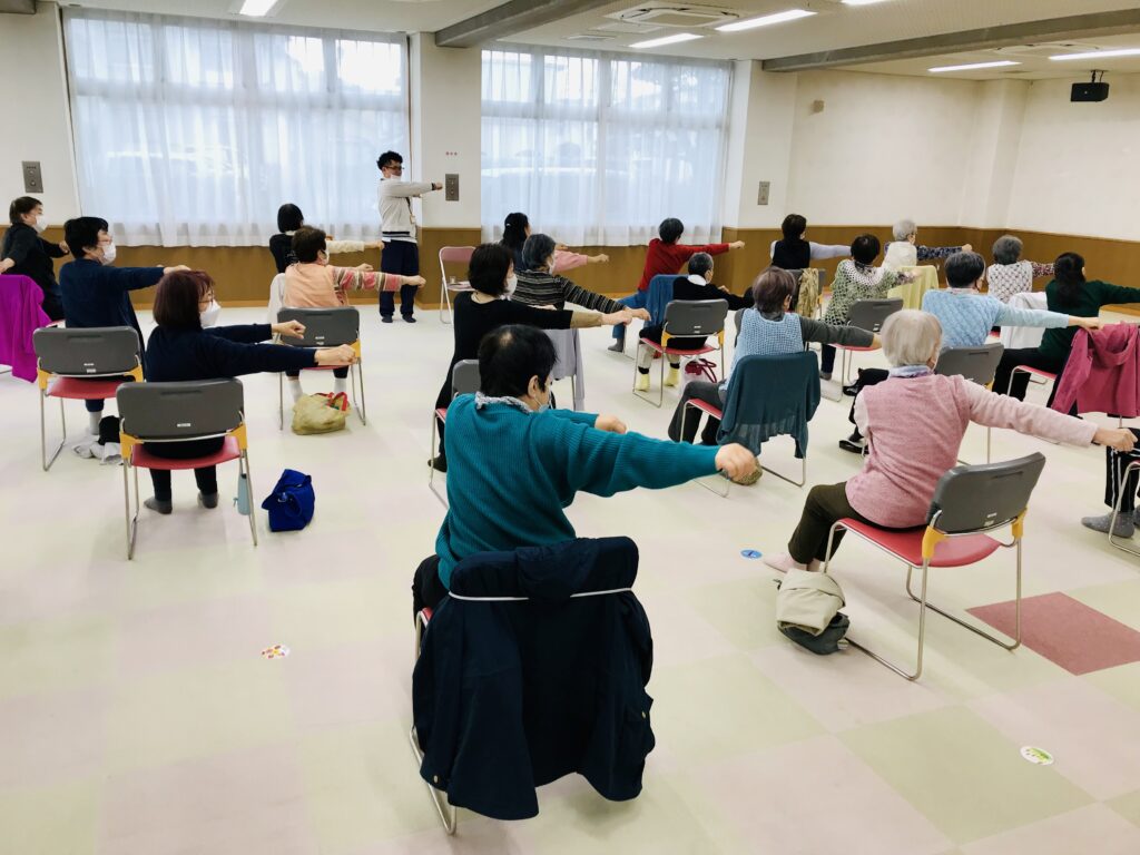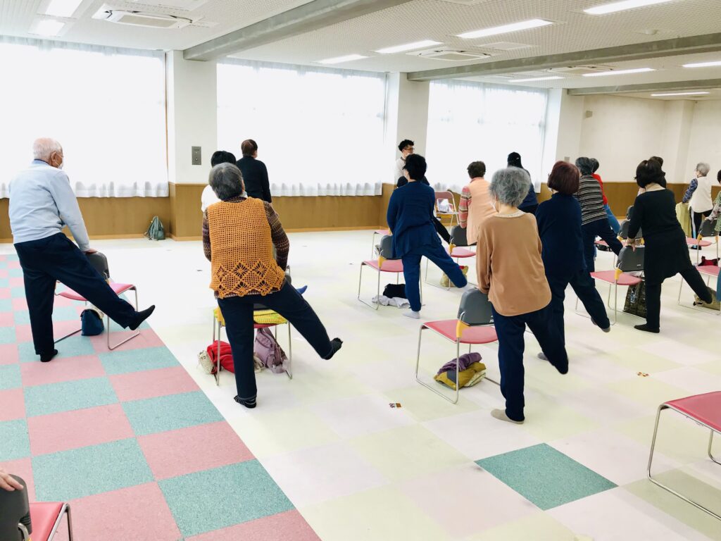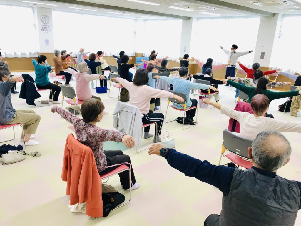 椅子に座ってできる準備体操・筋力運動・整理体操の3つの運動を行いました。