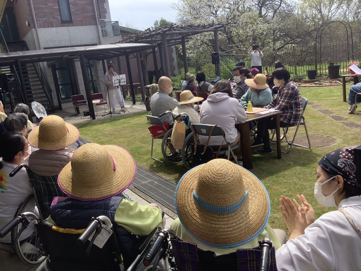 また参加者へは春を感じる色合いの綿あめや、練りきり、さくらゼリーを召し上がっていただき、口の中でも春を感じていただきました。 楽器の演奏後も、ご家族様と過ごすひと時、あちらこちらで笑顔の花で溢れかえっていました。 🌷 その様子を見る職員たちも自然と笑顔になっていきますね💓
