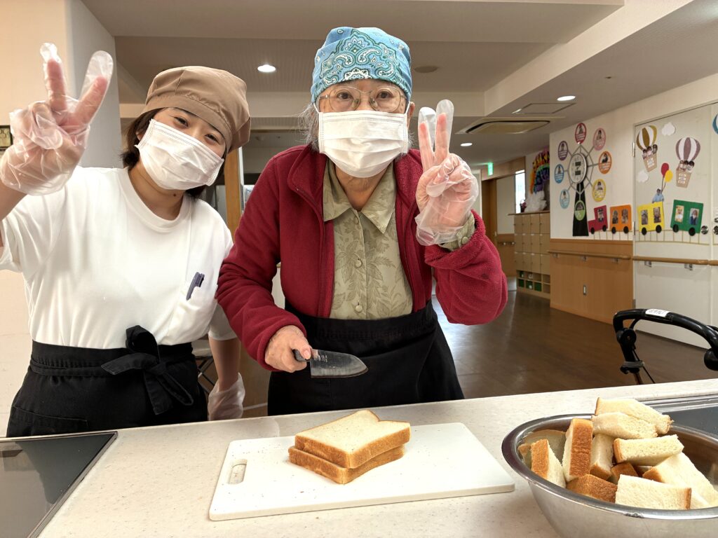 食べやすい大きさに食パンをカット🔪✨
