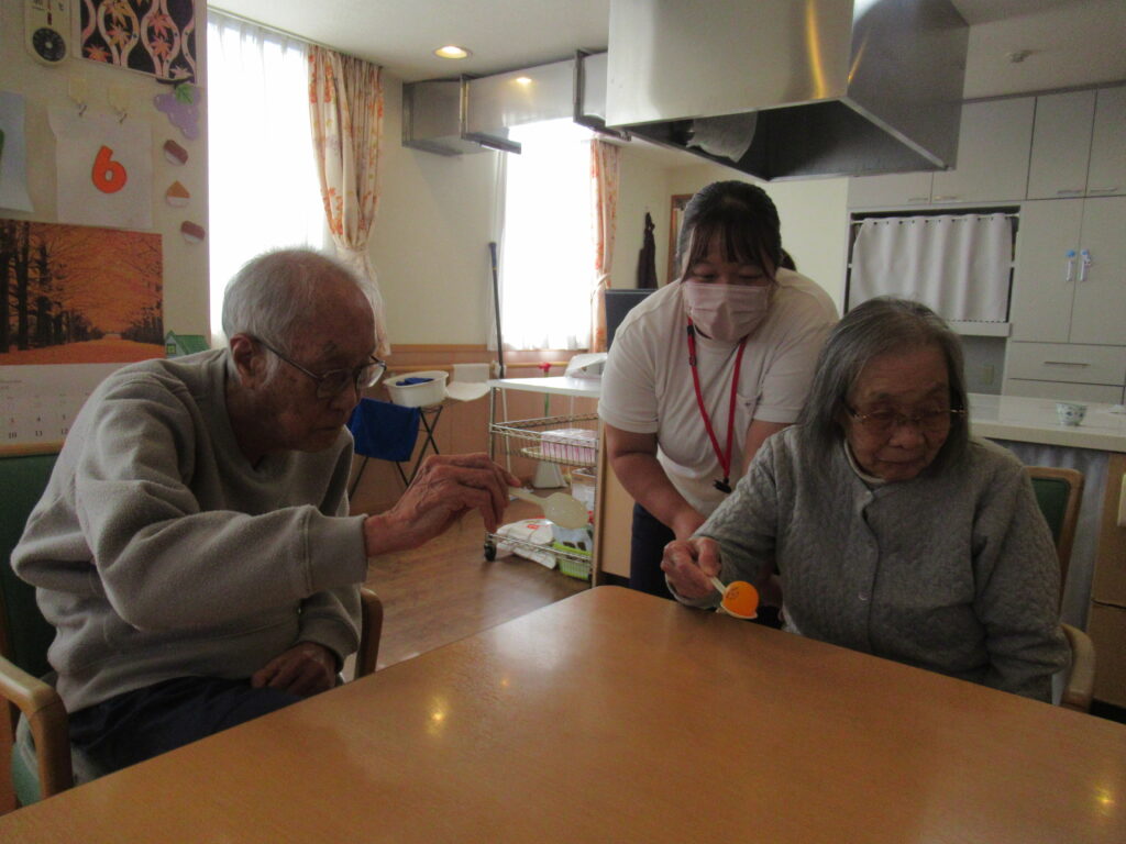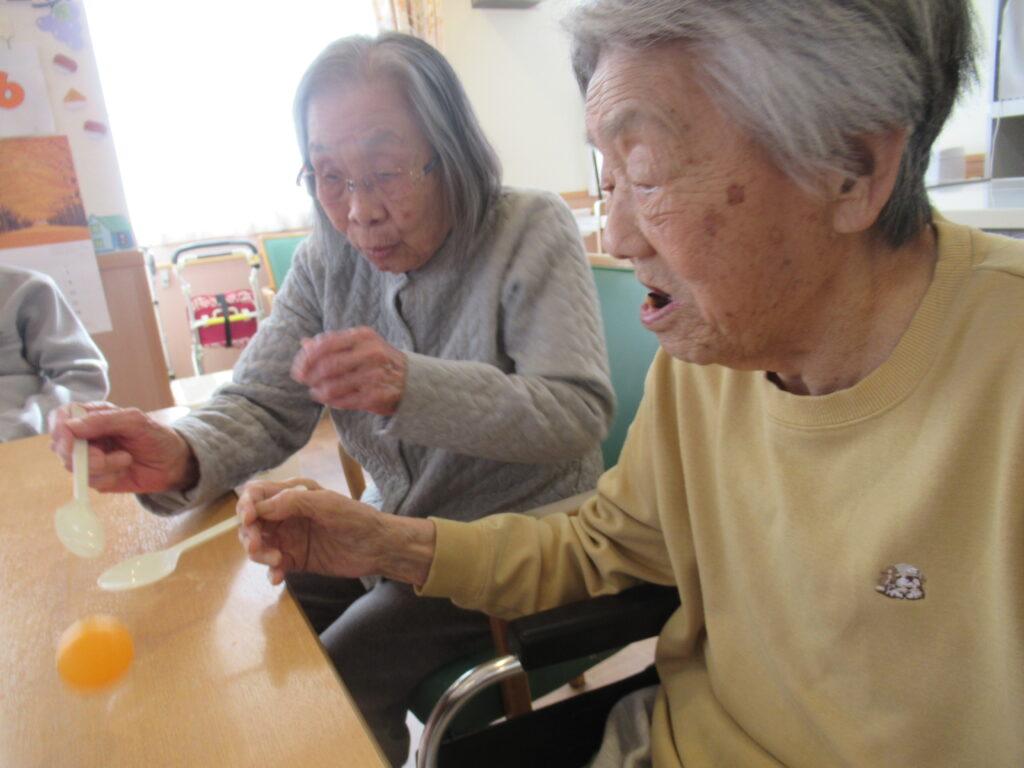 今回は “グループホーム清華苑の新たな定番ゲーム探し” をすべく、新ゲームに挑戦してみました!その名も スプーン渡し🥄🏓💫。