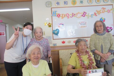 10月にお誕生日を迎えた方のお祝いを行いました!! 主役のN様にはキラキラ輝く飾りを付けていただき、他のご利用者様からお祝いのお言葉を一人ずつ伝えていただきました。 担当職員が作った誕生日カードもとても喜んでくださいまし・・・