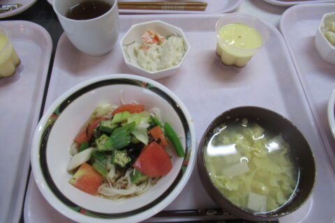 涼しい風や夕暮れが早くなって秋めいてきましたが、まだまだお昼時は夏の陽気。 グループホーム清華苑では、夏野菜を使ってごまキムチそうめん、茄子のみぞれ煮、トマトのさっぱり和えを作りました♪ 「できることがあったら何でも言う・・・