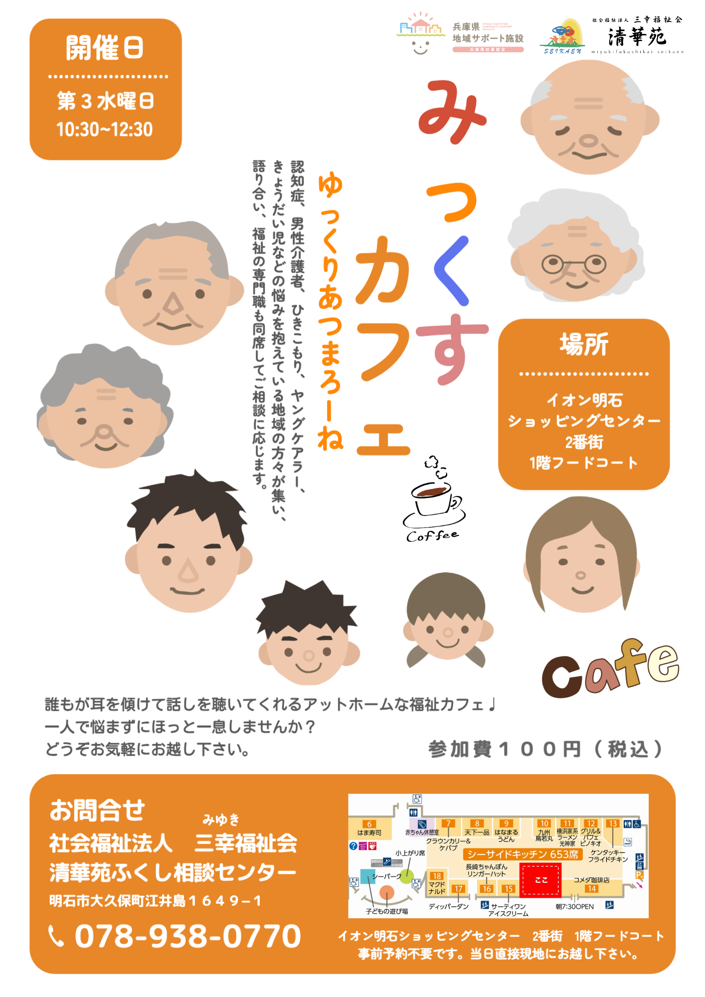 認知症の人やその家族、知人、医療やケアの専門職、地域の方々、認知症について気になる人が集まり、お茶を飲みながら、日頃の介護の悩みについて相談したり、たわいない雑談を楽しむ場所がオープンしました。あっとほーむで和気藹々と過せるカフェです。福祉の専門スタッフもおりますので、介護の事、認知症の事などお気軽にお尋ね下さい。